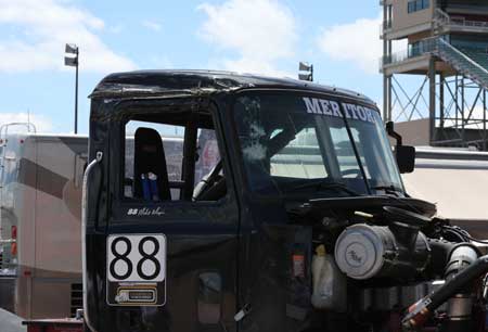 In the qualifying race Mike placed third behind the European drivers who placed first and second. The race order for Heat 1 was inverted so he started near the back. Lots of position changes and hard racing. Mackvader "kissed" the wall which resulted in some right side damage, but not enough to stop. After some agricultural racing 88-Mike placed 6th in that race. Heat 2 saw Mackvader back on the track with a third place finish.
