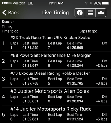 10:30 to 10:50 am -- Qualifying. Pole position just ahead of #23, Kristian Szabo