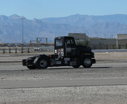 12:45 to 1:05 pm -- Heat Race 5. Morgan started in 5th. #23 passed #14 for 3rd, then passed #73 for 2nd behind #3. Mike's #88 locked up brakes creating a flat spot on a steering tire. To finish the race without further damage Mike eased back and stayed off the brakes as much as possible.