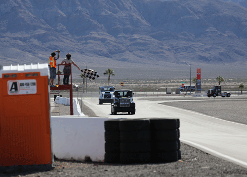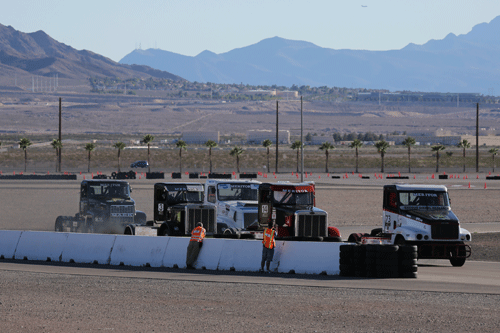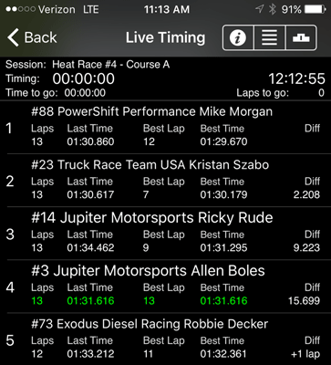 12:45 to 1:05 pm -- Heat Race 1. Mike started in pole position and finished in first place. Two trucks failed to finish due to mechanical issues. The racing season has been tough on these trucks.