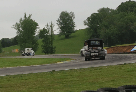 Morgan started at the back of the field, part of a penalty because the Race Capture in his truck was not transmitting in the previous race. [#31 received the same penalty. Both were also disqualified from Race 2, receiving NO points.]