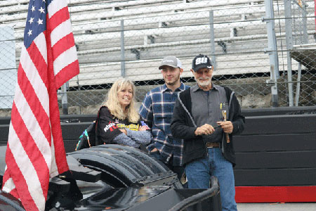 The A-Main Race was scheduled to be 30 laps, despite the fact that many of the drivers (including Mike) were wearing out their NEW right front tires in 15 laps. Some, including the #88, decided to just try to finish the 30-lap race and avoid the wreckage of the hard chargers who would blow their tires. Sure enough, in lap 21 the #69 spun and kissed the wall when his right front tire shredded. The caution was held long enough for the #69 to change his tire and return to the track with a fresh right front tire. Meanwhile, in a quick check of the other trucks it was determined that many would not be able to finish another lap and most could not finish the race. So, all trucks were allowed to pit and change their right front tires. The race was won by #7, Jon Lisenbee, in his first win of the series. Morgan's #88 started and finished in 14th.