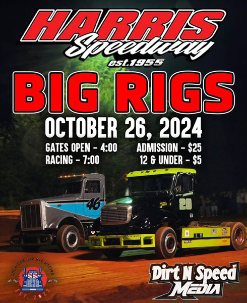 Harris Speedway is a 3/8 mile clay oval track in Rutherfordton, NC (western NC). This is a new track for American Big Rig Racing.