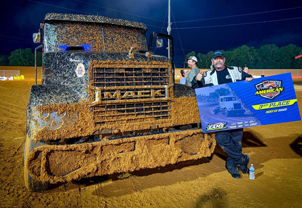 An afternoon rain storm created a wet track and lots of mud. Those seeking to pass were heavily mudded, making for poor/no visibility. Towards the end of the feature race Morgan could only see taillights of the #51 truck ahead of him! The very high banks of this dirt track made for a fast track that was surprisingly safe, even without an outside wall (except in front of the stands).