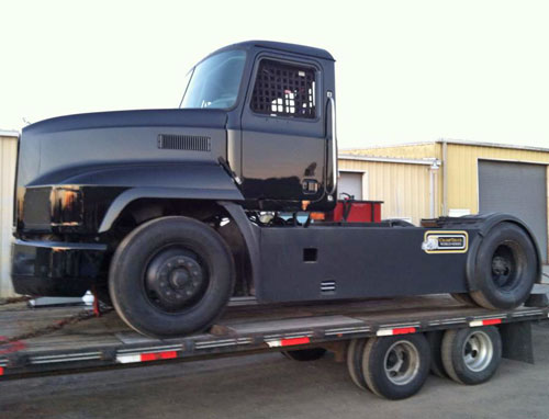 Mid-2016 Mackvader™ acquired two black stacks, two small hood scoops, and a shiny windshield visor.