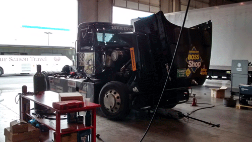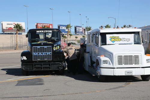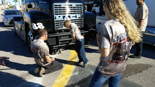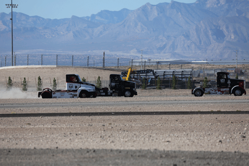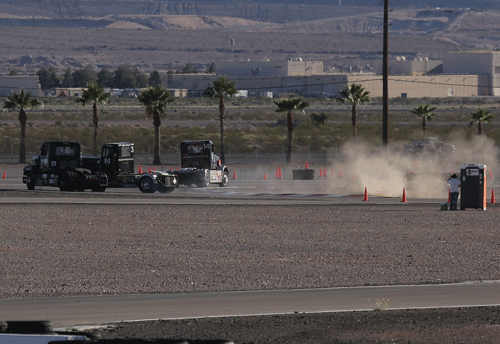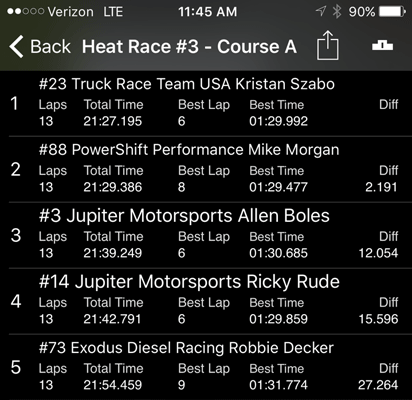 12:45 to 1:05 pm -- Heat Race 1. Mike started in pole position and finished in first place. Two trucks failed to finish due to mechanical issues. The racing season has been tough on these trucks.